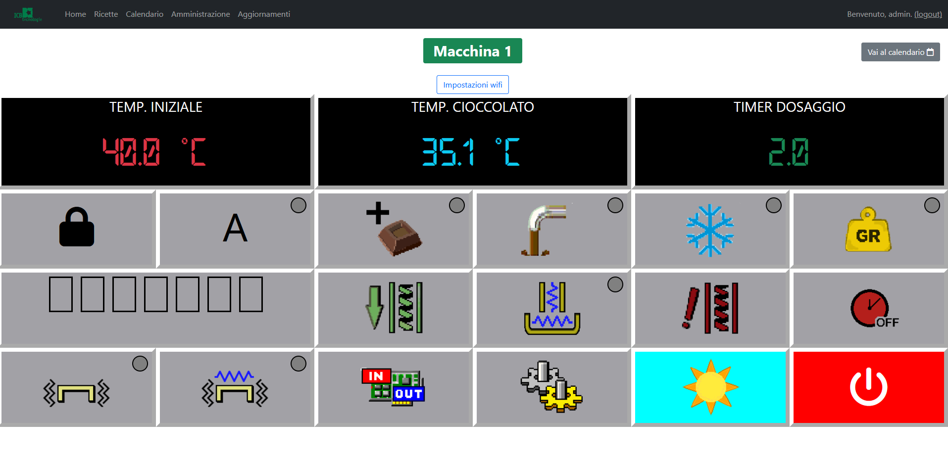Da questa pagina è possibile inviare un solo comando alla volta: l’applicazione non permette una nuova interazione fino a che quella precedente o è stata ricevuta e confermata dalla macchina o è “scaduta” (se entro 15 secondi un comando non è eseguito dal dispositivo, allora viene annullato ed è possibile provare ad inviarne un’altro).