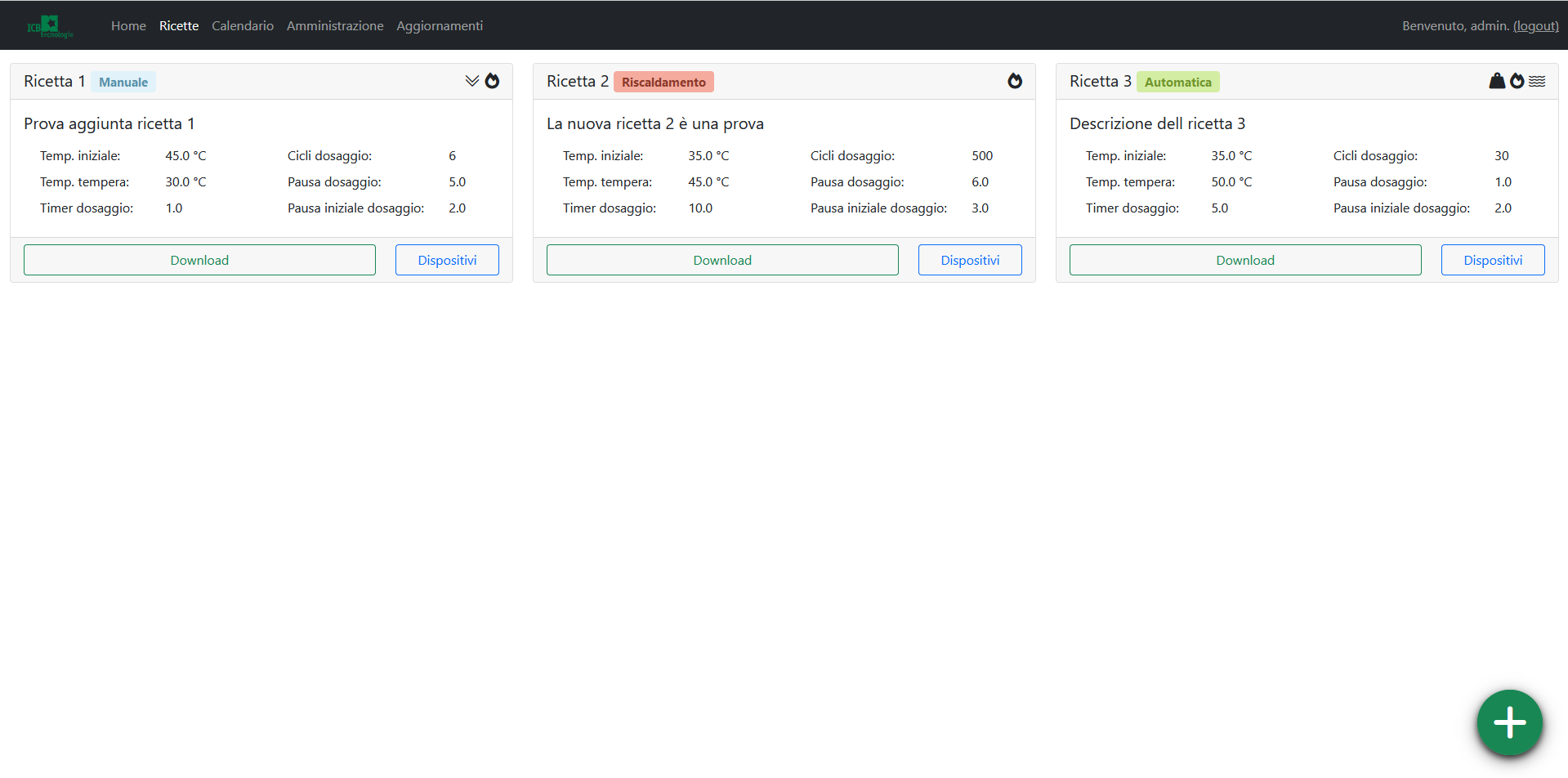 Nella pagina ricette sono mostrate tutte le ricette create dall’utente. Ogni ricetta è caratterizzata da un insieme di parametri: