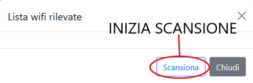A questo punto premere i bottoni blu Impostazioni wifi > Scansiona.